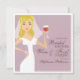 Uma bonito noiva loira de olhos azuis torce a família e amigos com uma taça de vinho nesta moderna tomada de um Chá de panela. Púrpura popular. Perfeito para um chá com tema de vinho ou para uma noiva que ama vinho. Também disponível: