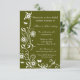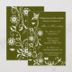 Convide os convidados para o próximo chá de casamento com este agradável design de convite que apresenta uma vinha branca floral e borboleta contra um fundo verde-oliva. O texto personalizável permite alterar fontes, alterar cores e tamanhos de texto conforme desejar. Matando papelaria de casamento disponível com esta design também.