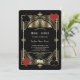 Design de cartão Real, Elegante, Vintage com estilo Gatsby Excelente, forma antiga do estilo "Hollywood Art Deco" de 1920, faux de ouro real fleur-de-lis, par de dados, fatos de jogar cartas (simulando cartas de jogar), em fundo preto, fontes vintage; no fundo, magnífico padrão Art Deco a preto. Use a ferramenta Personalizar para adicionar suas informações. Para mais, visite, por favor, a minha Coleção de Casamentos Dourados do Casino.