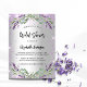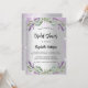 Um convite para chás na moda birdal moderno. Um fundo de aparência pura prateada com brilho violeta, faíscas, flores de lavanda, flores e verde de eucalipto. Personalize e adicione o nome e os detalhes da festa.