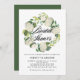 Chá de panela de Watercolor White Hydrangeas Wreath. Chá de panela botânico personalizável com ilustrações de cor d'água com hífens brancos. Este convite floral é perfeito para chás de panela de primavera e jardim. As cores deste chá de panela são perfeitas para qualquer tema.