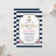 Convites de chá de panela de faixas brancas azuis Marinho de Âncora Dourada náutica.