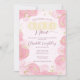 Design elegante, moderno e feminino "A Noiva está na Nuvem Nove" com nuvens de abstrato cor-de-rosa e elementos falsos de brilho dourado.