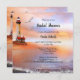 Chá de panela com uma pintura romântica de um oceano, praia e farol com duas gaivotas no pôr do sol. Perfeito para um casamento planejado de praia ou destino.