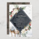 Este chá de panela apresenta pinheiros, montanhas, veados, florais de férias e um fundo de madeira rústica. Criado para um chá de panela de inverno, este convite certamente impressionará seus convidados.