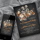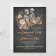 Um convite para a sua festa de noivado de Halloween! Os lindos casais florais e esqueletos são os toques perfeitos para você, assustador dia especial.