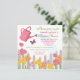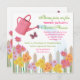Água cor-de-rosa pode chá as flores contra uma cerca de piquete com uma borboleta rosa (móvel) solteiro neste convite de festas bonito de Jardim Bridal. Excelente também para um almoço feminino, aniversário ou chá de fraldas. Precisa de mudanças? Não há problema em contactar-me. Ilustração desenhada à mão por McBooboo