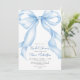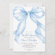 Chá de panela de Fita de Coquete do Arco Azul Bebê Belo chá de panela azul minimalista com arco de aquarela pintada manualmente e fita com texto azul e cinza. Você pode personalizar o texto, o estilo da fonte, a cor e o tamanho em frente e atrás do convite. Por favor, foi livre de me contactar para encontrar itens correspondentes.