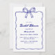 Celebre a noiva a ser com estes Convites de chá de panela de Arco de Fita Azul Whimsical! Apresentando um arco de fita divertido e desenhado à mão, peculiar, e imperfeições charmosas, estes convites adicionam uma vibração artística e leve a qualquer celebração. Personalize o texto (nomes, data, local) e escolha entre cartões impressos (prontos para o correio) ou um modelo digital. Perfeito para boho, rústico, ou retrotemático.