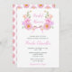 chá de panela bonito com uma coroa de flores e uma fita rosa. Perfeito para primavera ou chá de panela de verão. As palavras podem ser alteradas para se adequarem aos seus próprios detalhes ou requisitos.
