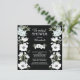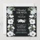 convites de chá de panela modernos de flores brancas assentam sobre um fundo preto contemporâneo. Sacudir as nossas flores florais na moda brancas e azuis convidam-nos para ver uma incrível correspondência floral para um toque especial extra. Visite nosso compro para convites de chá de panela florais bonitos em uma grande seleção de estilos e cores.