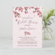 Estes convites de chá de panela apresentam flores cor-de-rosa. Eles fazem parte de uma coleção de casamento que inclui artigos de papelaria e presentes de casamento. Visite as páginas de coleta em nossa loja para ver a gama de cheios de casamentos e produtos de noiva que você pode personalizar para o seu casamento.