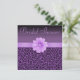 Convites de chá de panela elegantes e personalizados com um lindo e profundo púrpura e leopardo lilac / padrão de peles de animais de chita e uma flor lilás bonita com joias de diamante e fita. Estes convites elegantes são decorados de ambos os lados. Menina, chique, moda, convites modernos. Observe que: Todos os convites no Zazzle têm imagens impressas em formato plano. O texto, a fonte e a cor da fonte podem ser personalizados. Se precisar de ajuda para personalizar seu produto, entre em contato comigo pela loja. Ficarei feliz em ajudar.