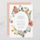Convide amigos e família a chá da noiva a ser com este elegante convite temático de flor silvestre, com flores rosa e amarelas, verde e borboletas.