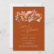 O amor está florescendo! Anuncie seu próximo chá de panela com nossos convites inspirados em boho, apresentando flores silvestres bonitinhas e encantadoras em tons tendinosos como laranja, verde-sábio, vermelho-escuro e rosa empoeirado em terracota. O moderno roteiro de pincel adiciona um toque de elegância a esses convites únicos que são perfeitos para qualquer celebração teatral de boho ou de matas., perfeito para o exterior e a festa de jardim.