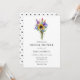 Um cheio buquê de flores silvestres, girassóis e ramos de lavanda para celebrar a noiva como sendo. Adorável convite perfeito para qualquer cenário para um chá de panela - ao ar livre, fazenda, quintal, jardim. Convite com um belo buquê floral com bolinhas pretas no verso. Personalize com suas informações.