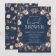 Convites Chá de panela de flor selvagem azul-Marinho-Elegan