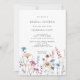 Chá de panela de campo de flores silvestres boho. Elegante chá de panela floral de aquarelas com lindas flores pintadas à mão com aquarelas dispostas em uma coroa em tons de vermelho, rosa, azul e amarelo para primavera, verão e chá de fraldas de outono. Com uma borda floral de flor silvestre no fundo. Você pode personalizar o texto, o estilo da fonte, a cor e o tamanho em frente e atrás do convite. Itens correspondentes disponíveis.