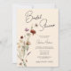 Queda do Chá de panela de flor selvagem de Boho com letra escrita e flores lindas e brancas, de cor aquática, silvestres, em matizes de burlão, violeta e creme. Convite para chá de panela mínimo e elegante para chás de panela de outono ou outono.