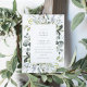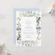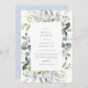 Este design apresenta flores azuis empoeiradas e folhas de eucalipto em tons de verde.