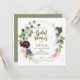Um belo chá de panela geométrico de design, enfeitado com flores azuis e roxas, e um toque de verde. Itens correspondentes no meu compro, como cartões rsvp, envelopes e etiquetas de endereço.