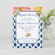 Trendy e moderno - flores pintadas à mão - flores cor-de-água - cor-de-rosa brilhante, laranja e flor amarela com um fundo azul de ikat. Itens correspondentes disponíveis em Impressoras digitadas