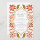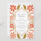 Um chá de panela floral retro-boho com um estilo boêmico vibrante que lembra os anos 60 e 70, com o tipo no centro de uma bonito borda simétrica rodeada de flores.