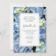 Convide convidados com o bonito Chá de panela de Flores de Hydrangea Azul para a sua festa pré-casamento honrando a noiva. Este elegante chá de casamento botânico personalizado apresenta uma fotografia floral pintada digitalmente de uma flor azul de hydrangea. Inpo perfeito para um evento de festa de jardim de verão.