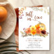 Chá de panela de amor perfeito para o outono, estação de abóbora e ação de graças. A design de aquarela apresenta folhas de outono, flores e abóbora em cores vivas. Fácil de editar para alternativo, como chá ou chá de casamento de casais.