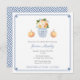 Este design inteligente de convite quadrado apresenta aquarelas que caem florais em um vaso de gengibre e abóboras laranja clássicas. No verso está um padrão de chave grega; você pode mudar a cor do contraste (atualmente azul escuro) para qualquer outra cor que você goste de dentro da ferramenta design). Mostrado aqui para um Chá de panela, mas todo o texto é personalizável para o seu evento.