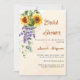 Um fundo de cor aquosa ouro decorado com girassóis de cor aquosa, flores de lavanda e eucalipto. Personalize e o nome da noiva a ser e detalhes.