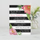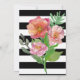 Chá de panela elegante feito em um padrão de faixa horizontal em preto-e-branco, com trabalho de arte de cor d'água de flores coloridas, no canto superior direito e no canto inferior esquerdo. Personalize o texto do seu evento noivo.