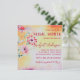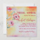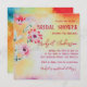Design de convite para chá de casamento com cores aquáticas desbotadas e flores vermelhas em um plano de cores aquáticas vermelho/laranja/amarelo. A redação pode ser completamente personalizada. Use a opção Personalizar para fazer ajustes. Use a ferramenta Editar design para fazer mais alterações, como modificar a fonte, a cor da fonte ou o layout de texto.