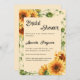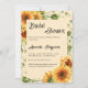 Um fundo amarelo macio decorado com uma moldura de girassol de cor aquosa. Personalize e adicione o nome da noiva a ser e detalhes.