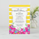 Comece seu chá de panela tropical hawaiano com nossas impressionantes flores de hibisco rosa e convites de chá de panela de flores de hibisco roxos. Nosso chá de panela na moda tropical apresenta um quadro de rico chic e é colocado em um fundo de faixa amarela e branca para realmente fazer elementos de convite pop e tem uma coordenação de volta. Perfeito para um chá de casamento de praia contemporâneo, chá de panela de destino, chá de panela de verão, chá de panela de primavera ou um chá de panela de luau.