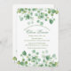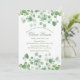 Um convite delicado e elegante, de branco, com bordas de folhas verdes. Adorável como Chá de panela ou para qualquer ocasião feliz. <br/>() A placa é fácil de personalizar com seu texto, fonte, cor da fonte e escolha de seis tipos de papel.<br/>() Não exatamente o que você está procurando? Todos os nossos produtos podem ser personalizados para atender às suas necessidades sem custo extra.<br/>() Basta entrar em contato conosco em askcottonlamb@gmail.com<br/>() Coordenando os produtos disponíveis: