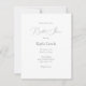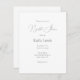 Só a letra escura da cinza sobre o branco é uma elegante busca por um tema de casamento minimalista. Este convite básico de casamento, somente texto, também é ideal para sua própria pintura aquosa. A pintura à mão nos convites para o casamento é fácil, com a capacidade adicional de mudar as cores da fonte e adicionar uma cor sólida na parte traseira do cartão. Altere facilmente o script elegante e a fonte serif para outras fontes.