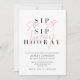 É hora de comemorar! Nosso Chá de panela Sip Sip Hooray apresenta "sip sip hooray" na apresentação moderna do tipo duo com a tipografia de script com letra de pincel sobre o tipo clássico de serif, e o cartão é personalizado no tipo moderno de sans serif. A parte traseira da placa apresenta uma foto favorita do noivado. Um belo convite para o chá moderno! Copyright Elegant Invites, todos os direitos reservados.