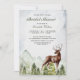 Encontrem seus hóspedes com este elegante chá de panela convidado com um belo cervo, pinheiros rústicos e montanhas ao fundo com código QR para registro de presentes. Basta adicionar os detalhes do seu evento neste modelo fácil de usar e adorar este cartão com as suas fotografias favoritas para o tornar um convite único.