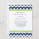 Chá de panela personalizado de convites para modelos de fotos em verde limão brilhante elegante, azul escuro de marinho e branco casual e padrão retrô chevron zigzags stripes, chic e feminino, personalizável com seus detalhes de chá. Também disponível em cartões de agradecimento e convites para a festa noiva.