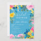 Chá de panela floral verde-russo de verão com girassóis azuis, amarelos e pintados, rosas rosa, eucalipto verde-sábio em azul-céu editável. Perfeito para o verão, casamentos externos.