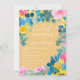 Chá de panela de fotos florais russo amarelo-boho corajoso de verão com girassóis azuis, amarelos e amarelos pintados, rosas cor-de-rosa, eucalipto verde-sábio em azul-céu editável. Perfeito para o verão, casamentos externos.