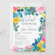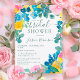 Chá de panela floral verde-russo de Verão com girassóis azuis, amarelos, pintados, rosas cor-de-rosa, eucalipto verde-sábio em verde-escuro editável. Perfeito para o verão, casamentos externos.