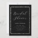 Um modelo simples, moderno, elegante, formal e clássico de chá de panela com fundo preto, um quadro de diamantes brancos (simulado, não verdadeiros diamantes!), um roteiro de caligrafia moderno e a tipografia em branco. Um design chic, eterno que combina o design de casamento formal tradicional com a caligrafia moderna e um trendy layout.