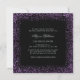 Estes convites de chá de panela maravilhosos têm um fundo preto escuro e um confete roxo de vidro que parece design em todas as bordas. O texto é de cor prateada.