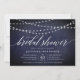 Nossas elegantes convites de chá de panela em azul-da-meia-noite-chic e branco apresentam um fundo azul-da-meia-noite com textura rica com cordas de luzes brancas no topo, e "chá de panela" na tipografia de scripts de caligrafia. Personalize com seu chá de panela e detalhes do registro abaixo em letras brancas.