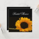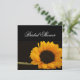 O chá de panela elegante convida com uma foto de um girassol solteiro na frente. As informações do evento estão no verso.