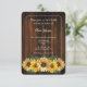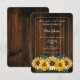 Crie um convite único para todos os seus com um chá de panela Rústico de Girassol. Design de convite apresenta um fundo de madeira rústico com um buquê elegante de girassóis. Personalize com o nome da noiva junto com os detalhes do chá de panela. Material adicional disponível com esta design também.