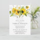 Os girassóis amarelos decoram o topo deste convite para chás de panela.
