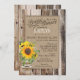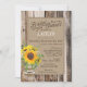 Design de cartão de chá de panela ocidental russo com girassóis em jarro de mason com burlap e rendas atadas em fio sobre tecido de olhar de linho e planaltos de madeira de celeiro e um coração entalando com monograma no verso.
